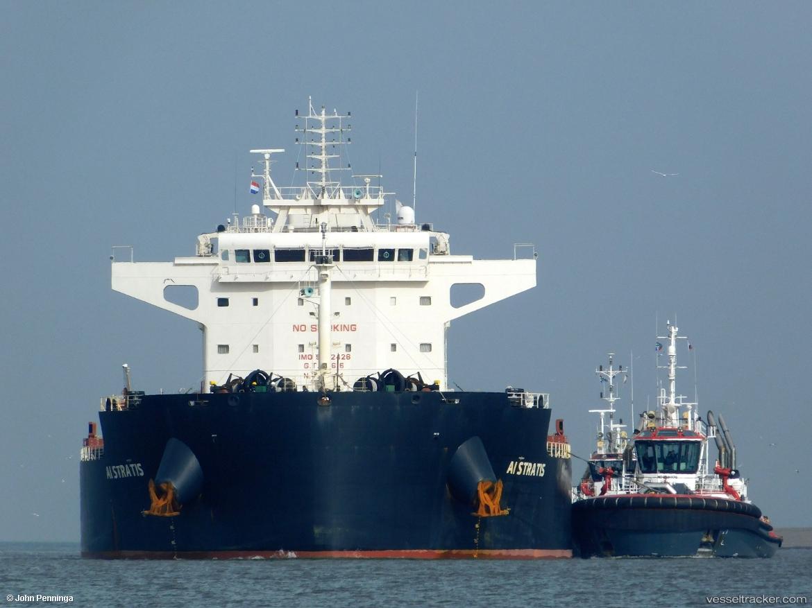 Al Stratus, new customer in Eemshaven. Bow shot. Assisted by 2 Wagenborg tugs. Oct/07/2025
